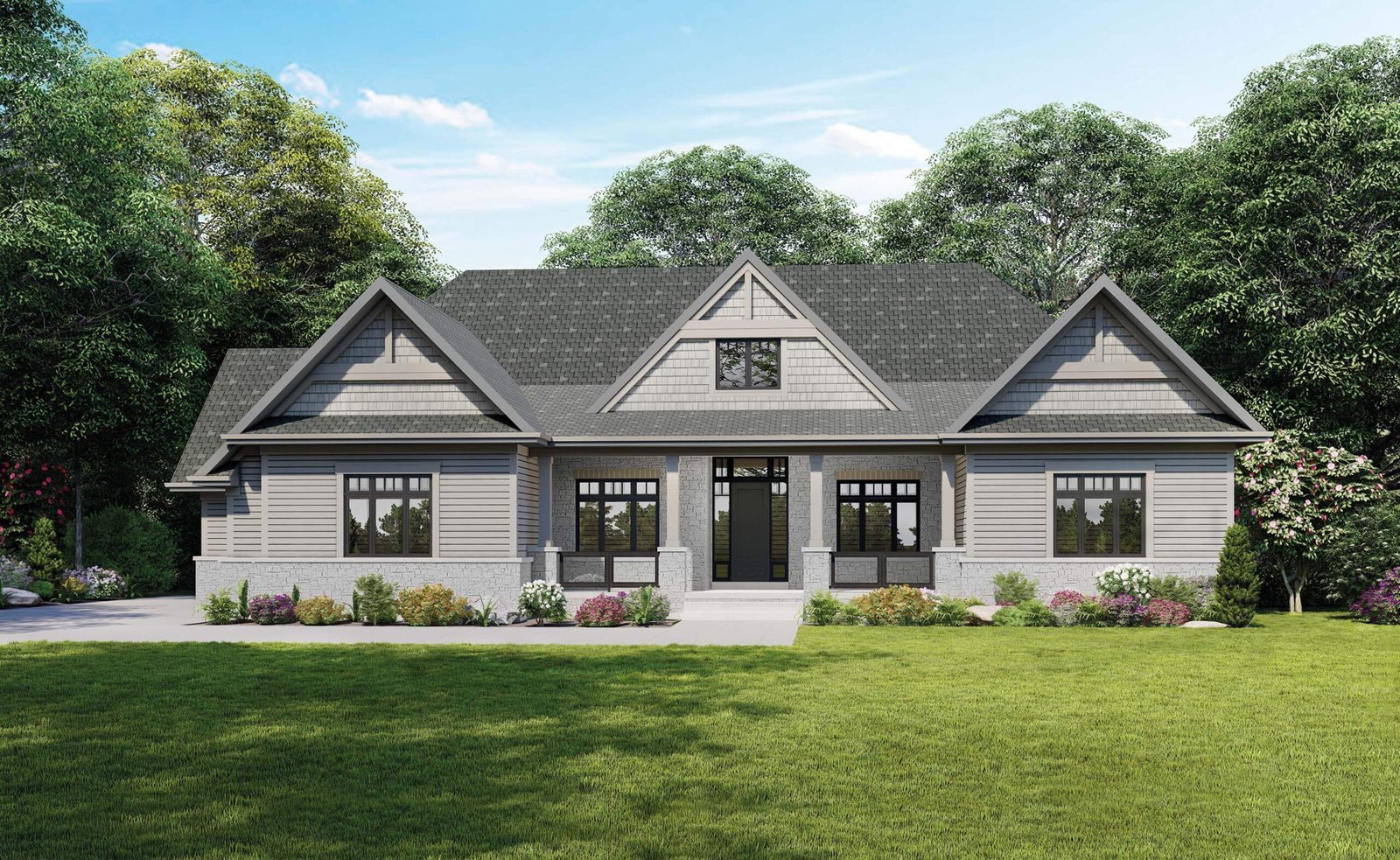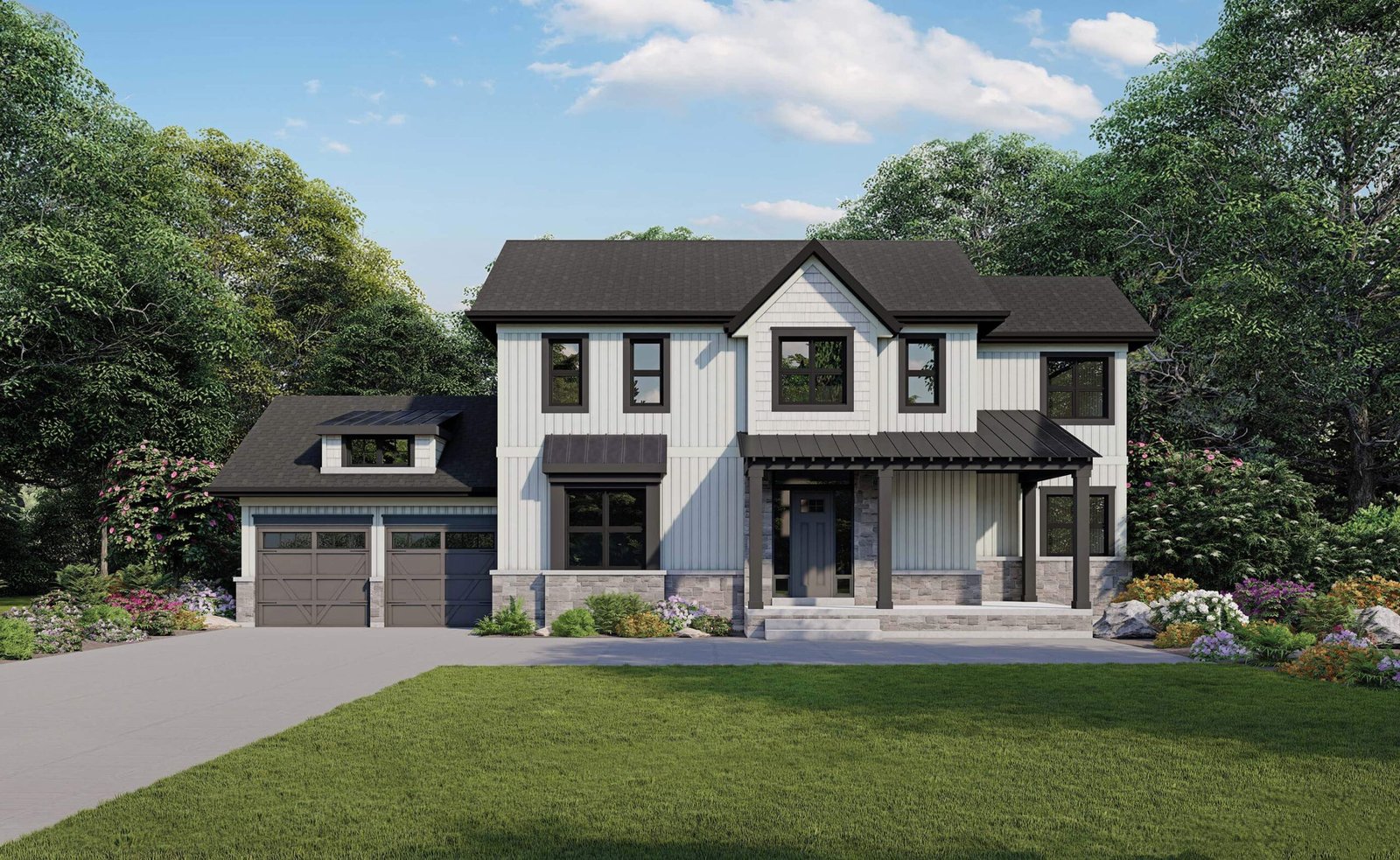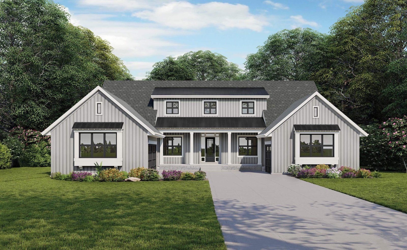 Farmhouse inspired exterior architecture with spacious 10 foot ceilings throughout the main floor.